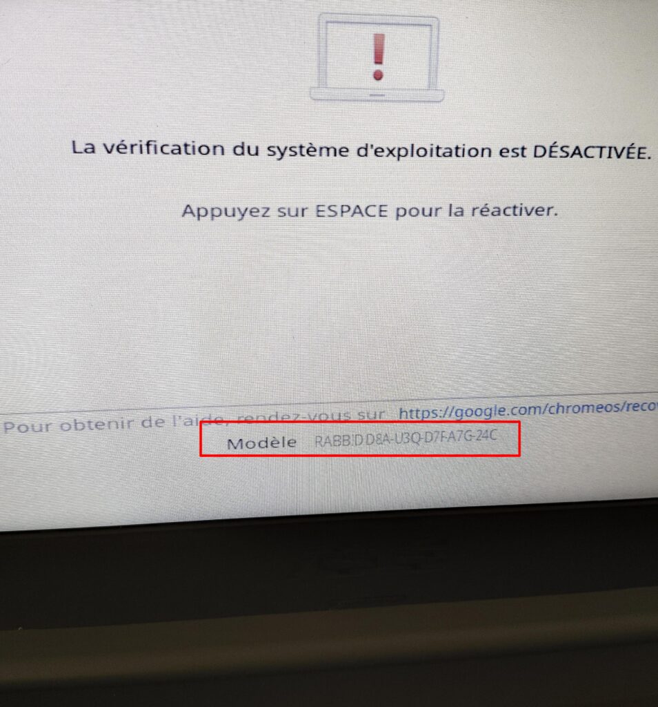 Sur la seconde photo, j’ai encadré RABBID. Il s’agit du modèle de carte mère du Chromebook ce qui permet de connaître sa compatibilité sur le site mrchromebox. C’est assez important à signaler car si RABBID apparaît bien, le nom du modèle n’apparaît pas à côté. Je suppose que le site a noté quelques modèles, mais pas tous. Il y a donc bien plus de Chromebook qui supportent Linux que ce que l’on pourrait penser.